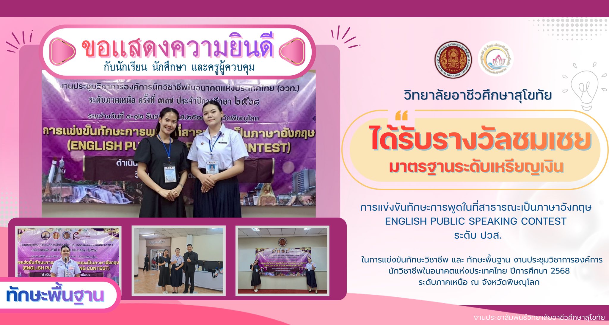 ในการแข่งขันทักษะวิชาชีพ และ ทักษะพื้นฐาน งานประชุมวิชาการองค์การนักวิชาชีพในอนาคตแห่งประเทศไทย ปีการศึกษา 2568 ระดับภาคเหนือ ณ จังหวัดพิษณุโลก