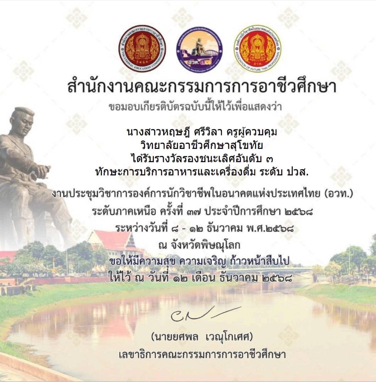 ในการแข่งขันทักษะวิชาชีพ และ ทักษะพื้นฐาน งานประชุมวิชาการองค์การนักวิชาชีพในอนาคตแห่งประเทศไทย ปีการศึกษา 2568 ระดับภาคเหนือ ณ จังหวัดพิษณุโลก
