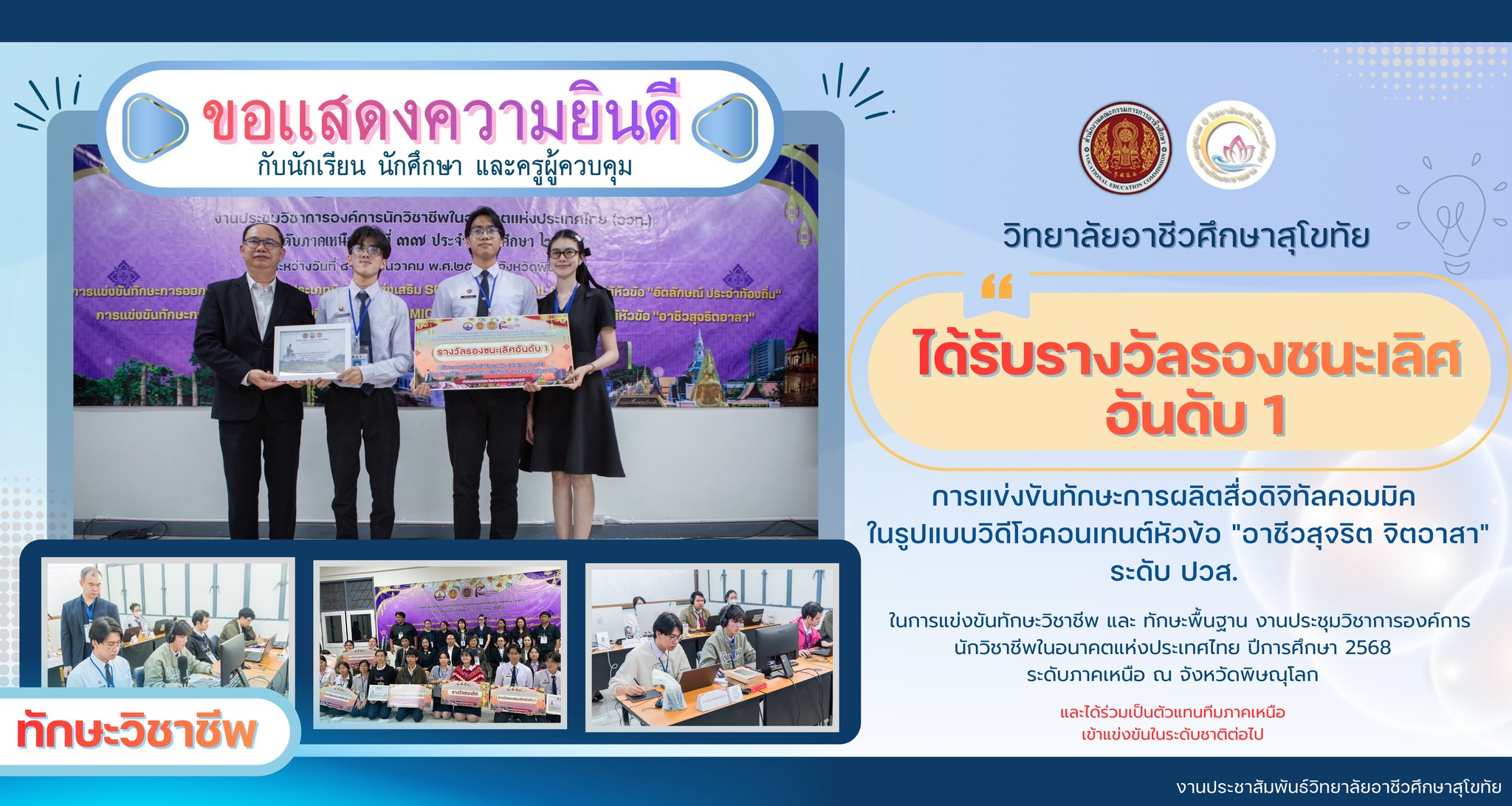 ในการแข่งขันทักษะวิชาชีพ และ ทักษะพื้นฐาน งานประชุมวิชาการองค์การนักวิชาชีพในอนาคตแห่งประเทศไทย ปีการศึกษา 2568 ระดับภาคเหนือ ณ จังหวัดพิษณุโลก