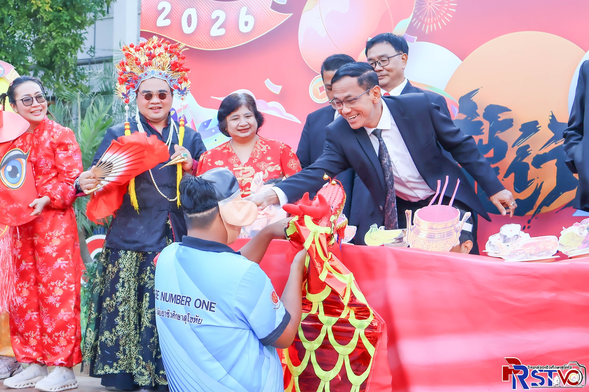 วันพุธที่ 14 มกราคม 2569 วิทยาลัยอาชีวศึกษาสุโขทัย โดย นายมารุต รื่นรวย ผู้อำนวยการวิทยาลัยอาชีวศึกษาสุโขทัย พร้อมด้วยคณะผู้บริหาร คณะครู บุคลลากรทางการศึกษา และนักเรียนนักศึกษา ร่วมกิจกรรมวันตรุษจีน 2026 ณ บริเวณหน้าเสาธง เเละ ลานสุขใจ วิทยาลัยอาชีวศึกษาสุโขทัย