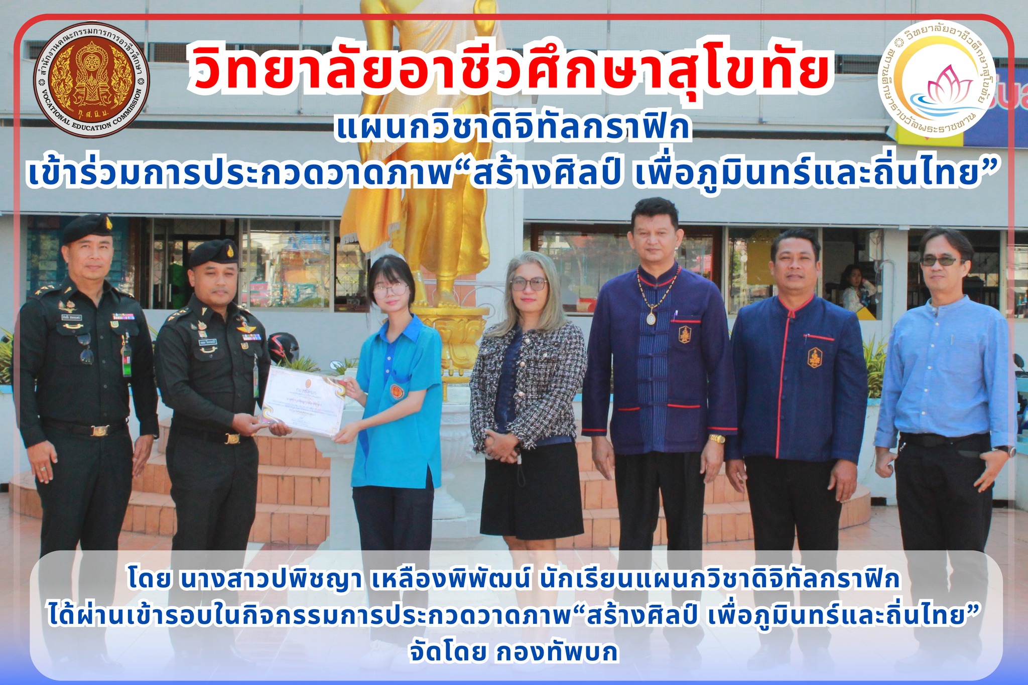 วิทยาลัยอาชีวศึกษาสุโขทัย ขอแสดงความยินดี กับนักเรียน นักศึกษา แผนกวิชาดิจิทัลกราฟิก