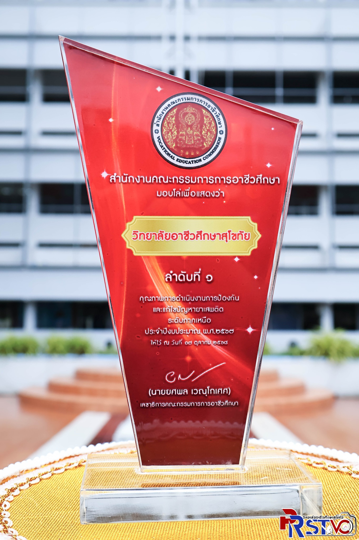 วิทยาลัยอาชีวศึกษาสุโขทัยได้รับโล่รางวัล “อันดับ1” คุณภาพการดำเนินงานการป้องกัน และแก้ไขปัญหายาเสพติด ระดับกาคเหนือ ประจำปีงบประมาณ พ.ศ.2567