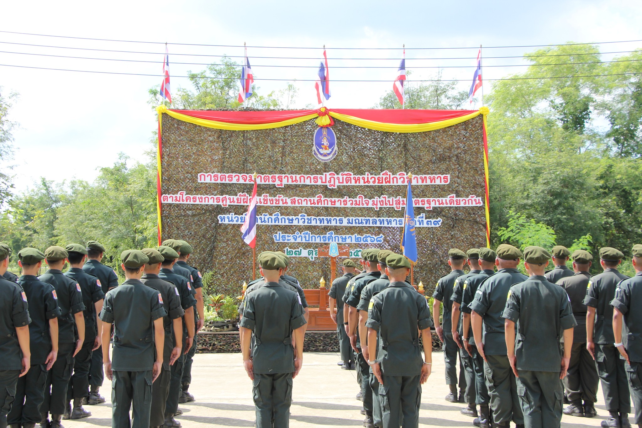 เมื่อวันที่ 27 ตุลาคม 2568 วิทยาลัยอาชีวศึกษาสุโขทัย โดยมายมารุต รื่นรวย ผู้อำนวยการวิทยาลัยอาชีวศึกษาสุโขทัย นายชรินทร์ ฟักรักษา รองผู้อำนวยการฯ และนายธนเดช แป้นโพธิ์กลาง หัวหน้างานกิจกรรม มอบหมายให้ นายธนพนธ์ บุตรพรม ครูผู้กำกับนักศึกษาวิชาทหาร เข้ารับการรายงานผลการปฏิบัติงานของสถานศึกษาวิชาทหาร ตามโครงการศูนย์ฝึกแข็งขัน สถานศึกษาร่วมใจมุ่งไปสู่มาตรฐานเดียวกัน ประจำปีการศึกษา ๒๕๖๘ โดยมีประธานการตรวจประเมินคือ พ.อ.อชิลักษณ์ พจน์พัฒนพล ผอ.กปช.นรด. เป็นหัวหน้าคณะฯ นายทหารนำตรวจ นฝ.นศท.มทบ.39 คณะกรรมการตรวจมาตรฐานการปฏิบัติฯ ทภ.3 พร้อมด้วย พ.ท.ชัฎสุ สุธาพจน์ ผบ.นฝ.นศท.มทบ.39 นำตรวจ หัวหน้ากรรมการ
