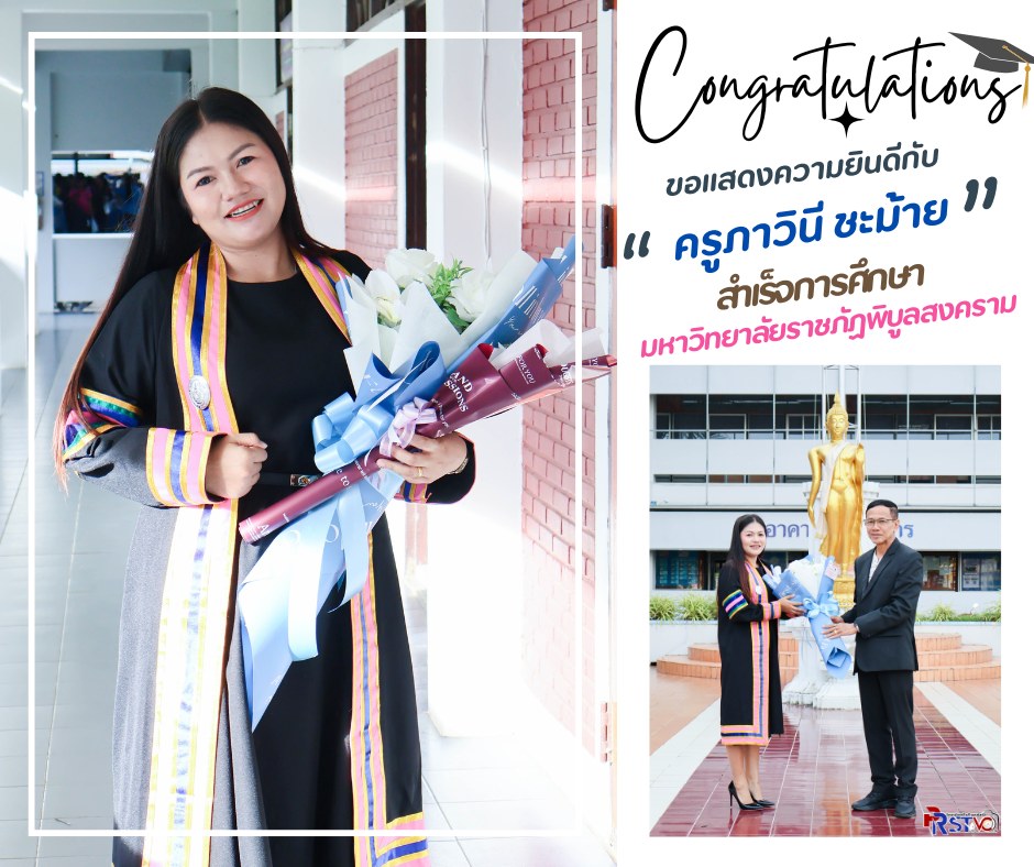 2. นางสาวสุทิดา ขยันยิ่ง ตำแหน่ง เจ้าหน้าที่งานพัสดุ ในโอกาสจบการศึกษา ระดับปริญญาตรี หลักสูตร บริหารธุรกิจบัณฑิต สาขาวิชาการจัดการ มหาวิทยาลัยราชกัฏพิบูลสงคราม