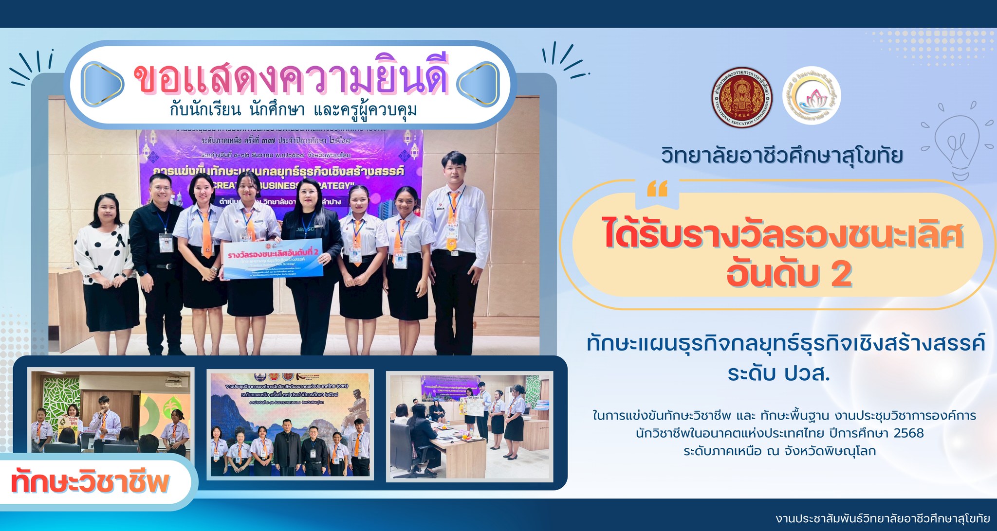 ในการแข่งขันทักษะวิชาชีพ และ ทักษะพื้นฐาน งานประชุมวิชาการองค์การนักวิชาชีพในอนาคตแห่งประเทศไทย ปีการศึกษา 2568 ระดับภาคเหนือ ณ จังหวัดพิษณุโลก